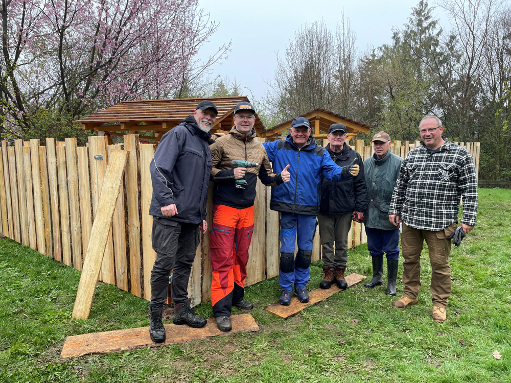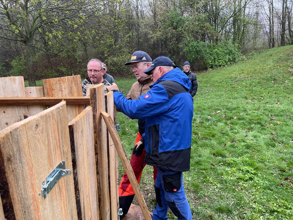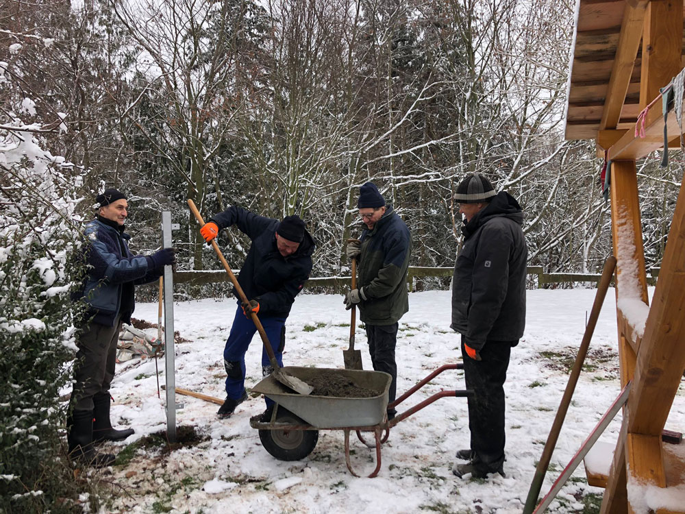 Setzen der Zaunpfosten (VL: Dr. Andreas Theune, Rüdiger Wiedenbein, Dr. Rolf Warnecke und Jürgen Sander)