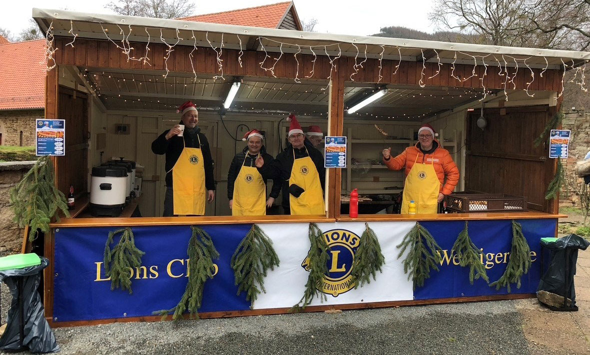 Auch auf dem Adventsmarkt im Kloster Ilsenburg ist der Stand des Lions Club Wernigerode immer gut besucht, hier allerdings mit echten Thüringer Würstchen und Glühwein im Angebot.