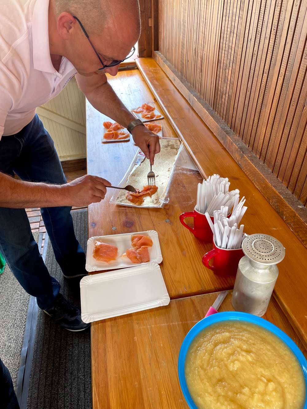 Frisch ausgebacken und serviert sind die Puffer mit Apfelmus oder mit Lachs ein echter Leckerbissen und stets sehr beliebt bei den Besuchern des Wernigeröder Rathausfestes