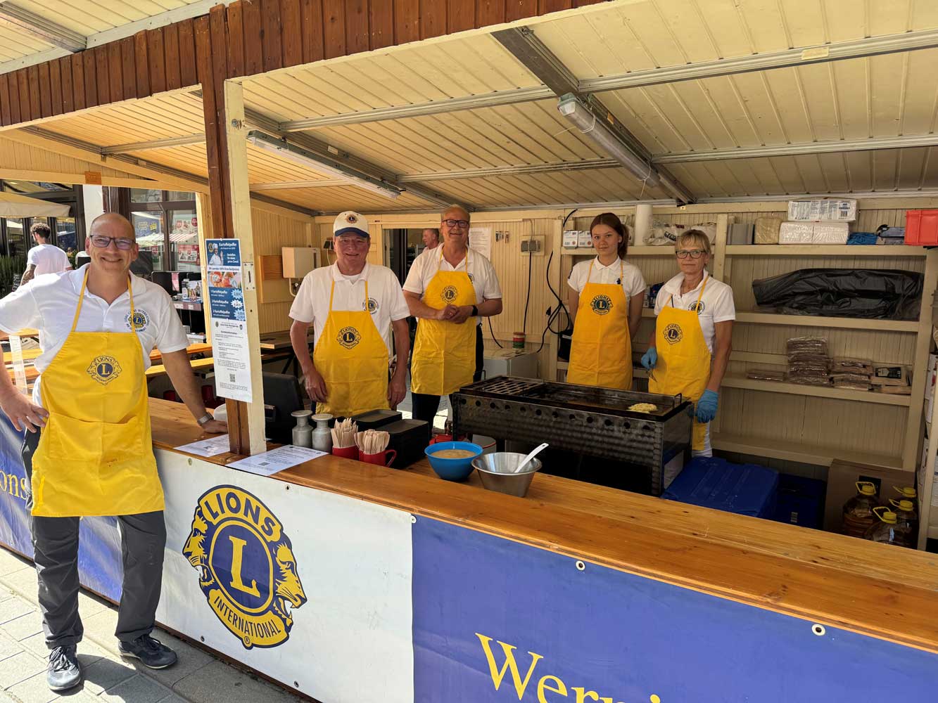 Eine feste Institution beim Wernigeröder Rathausfest ist der Lions-Stand mit den „leckersten Kartoffelpuffern der Stadt“. Hier werden von Lions-Mitgliedern, häufig unterstützt durch unsere Partnerinnen, Kartoffelpuffer nach unserem Hausrezept gebacken. Der Pufferteig wird dafür selbstverständlich frisch zubereitet und das schmeckt man!